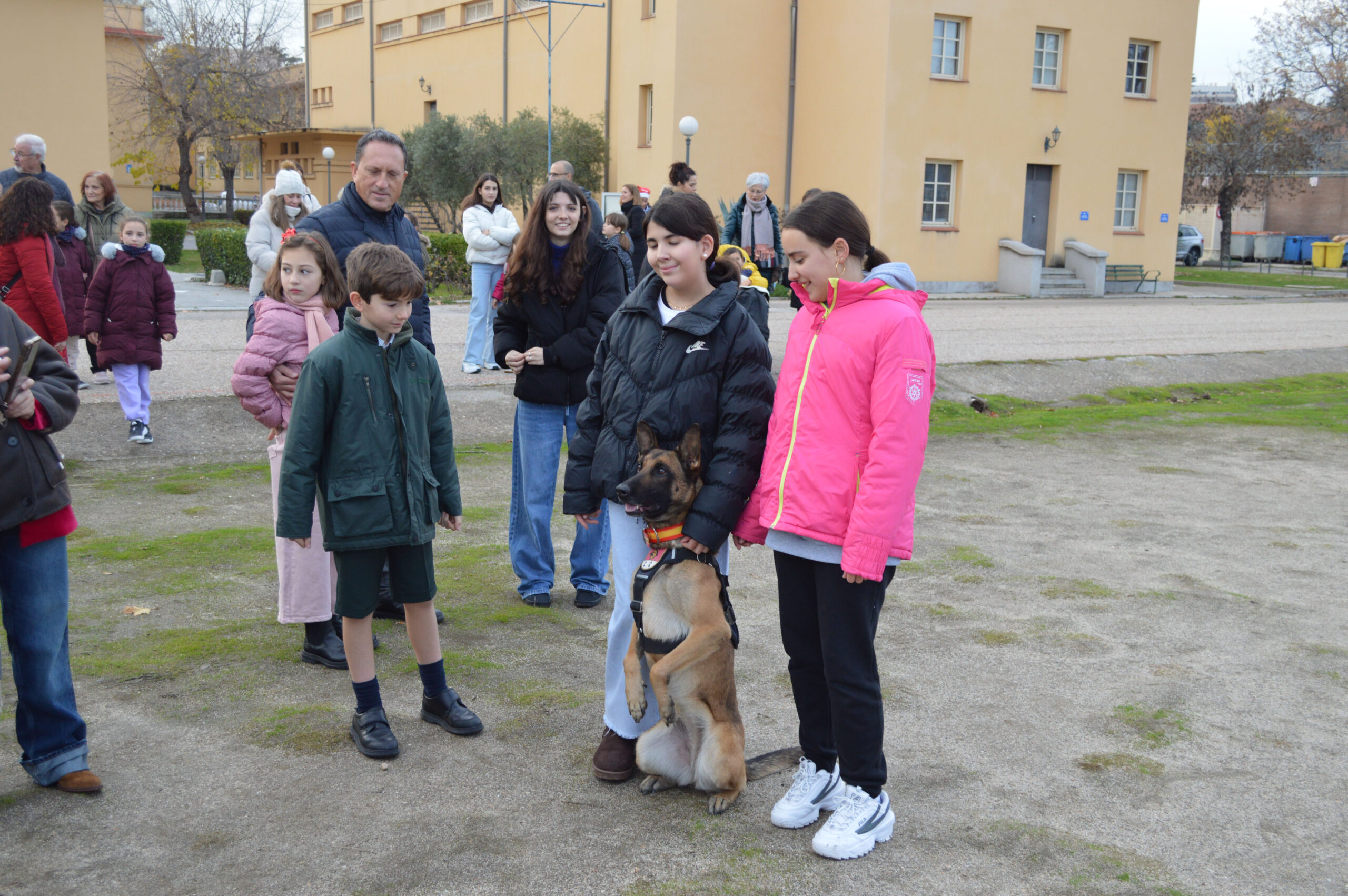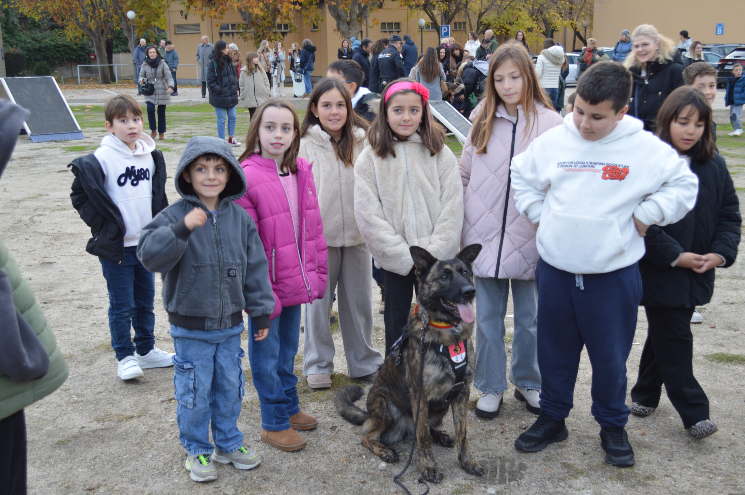 La tarde comenzó con una emocionante exhibición de la Unidad de Guías Caninos, que despertó la admiración tanto de los más pequeños como de los adultos. Durante la demostración, los asistentes pudieron conocer el trabajo que realizan estos profesionales en la detección de dinero, drogas y explosivos, así como en la protección ante situaciones de riesgo.