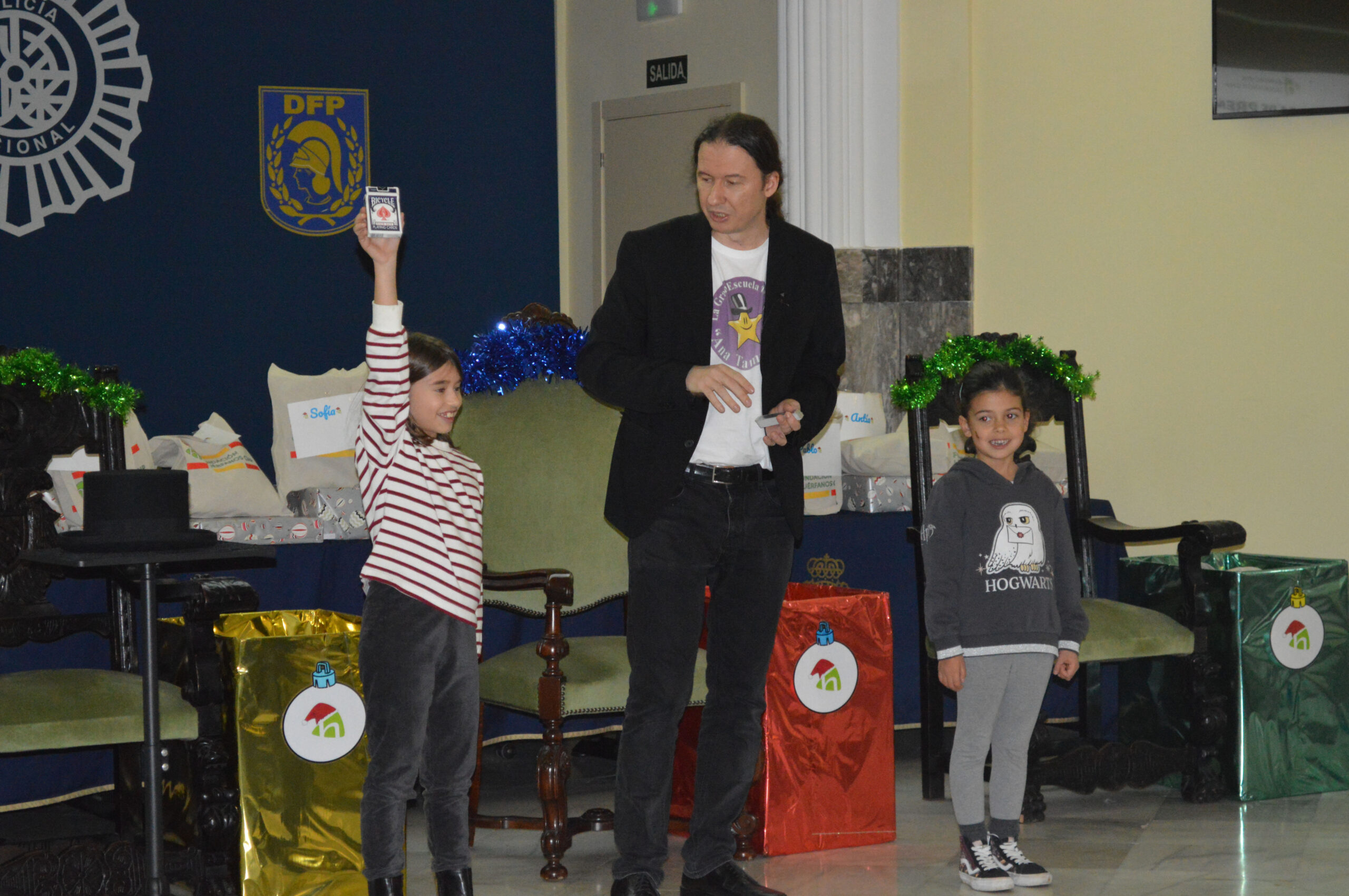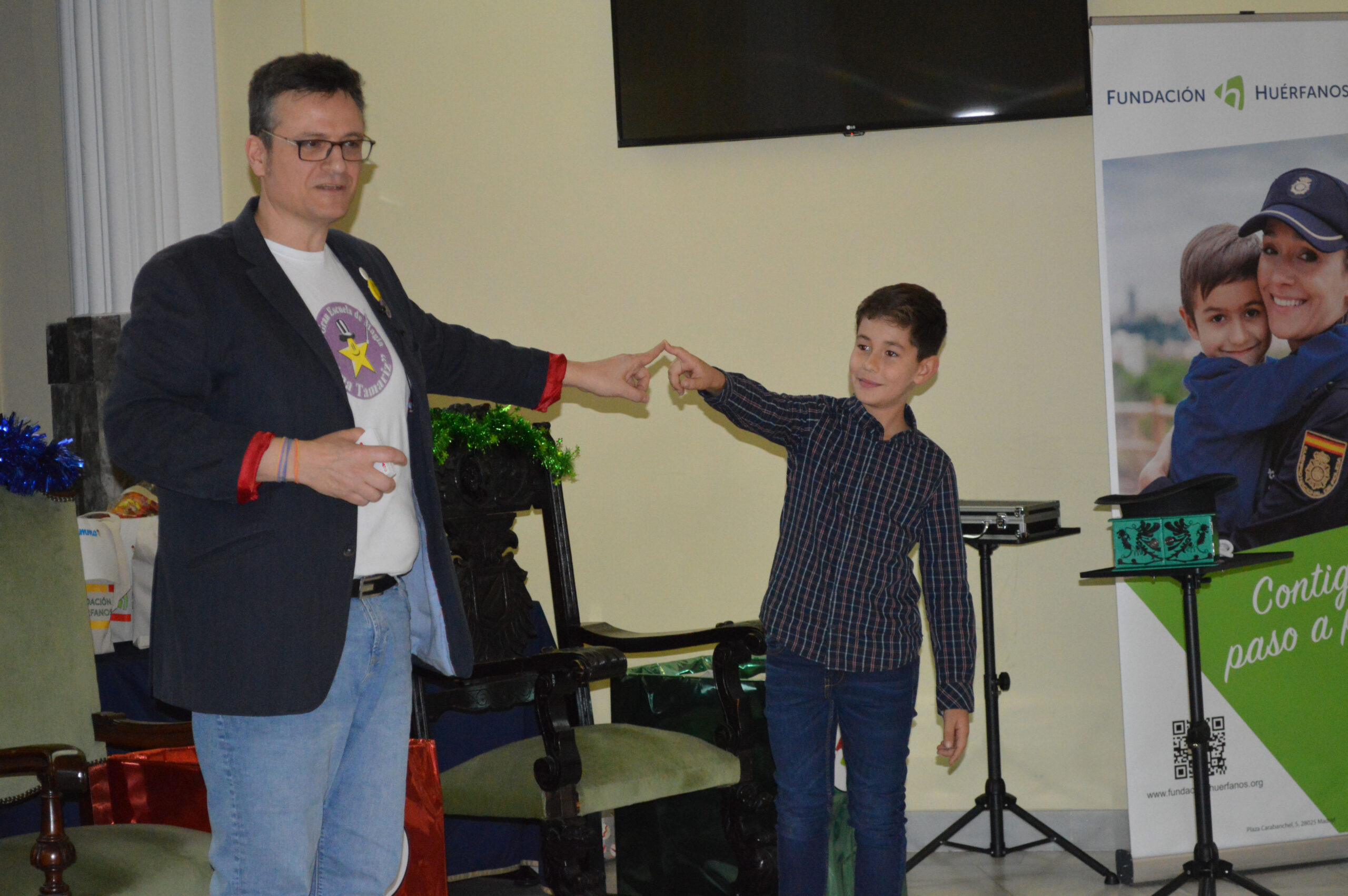 A continuación, ya en el interior del Edificio Memorial, los niños disfrutaron de un divertido espectáculo de magia a cargo de Pablo Perea y Miguel Santolaya, de la Escuela de Magia de Ana Tamariz, que llenó el ambiente de asombro y risas.