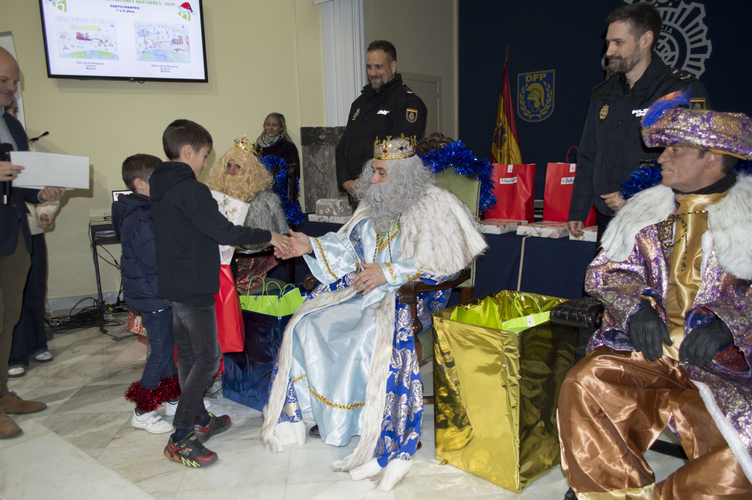 Posteriormente tuvo lugar la entrega de premios, que contó con unos invitados de lujo, sus Majestades los Reyes Magos de Oriente que quisieron acercarse hasta la Fundación para entregar los premios a los niños. Llegaron acompañados por las unidades de Caballería pertenecientes a la Comisaría General de Seguridad Ciudadana de Madrid.